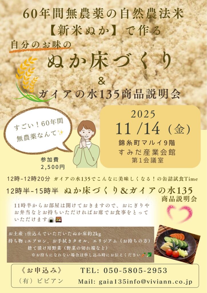 【東京・錦糸町】「自分の味のぬか床づくり & ガイアの水135商品説明会」