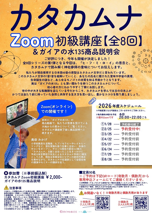 【ZOOM講座】「全8回・カタカムナ初級講座②&ガイアの水135商品説明」
