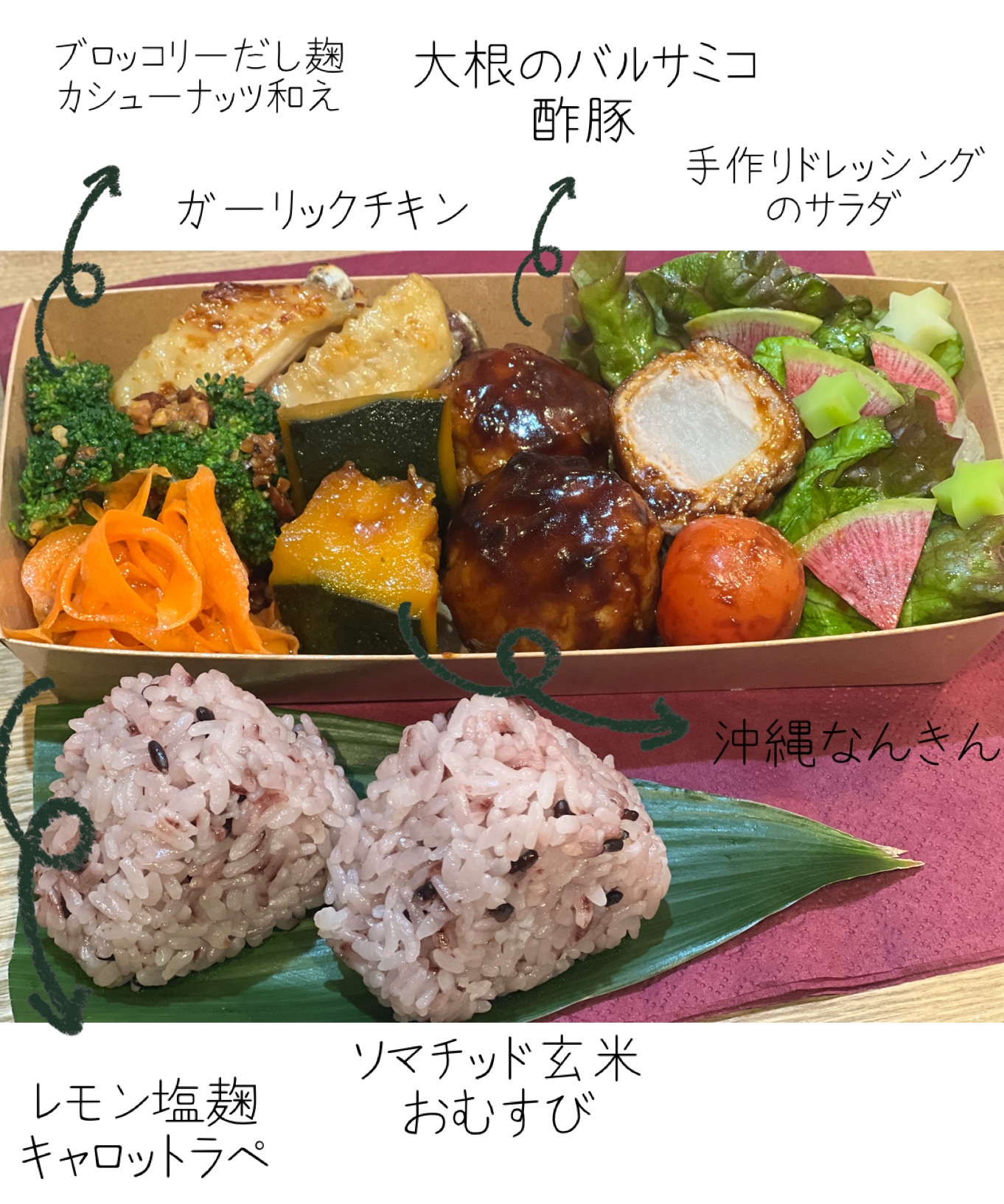 発酵のチカラとガイアの水135で、カラダの内側から優しく整える、手作り腸活弁当をお召し上がりいただけます。写真はイメージで当日のメニューとは異なります。