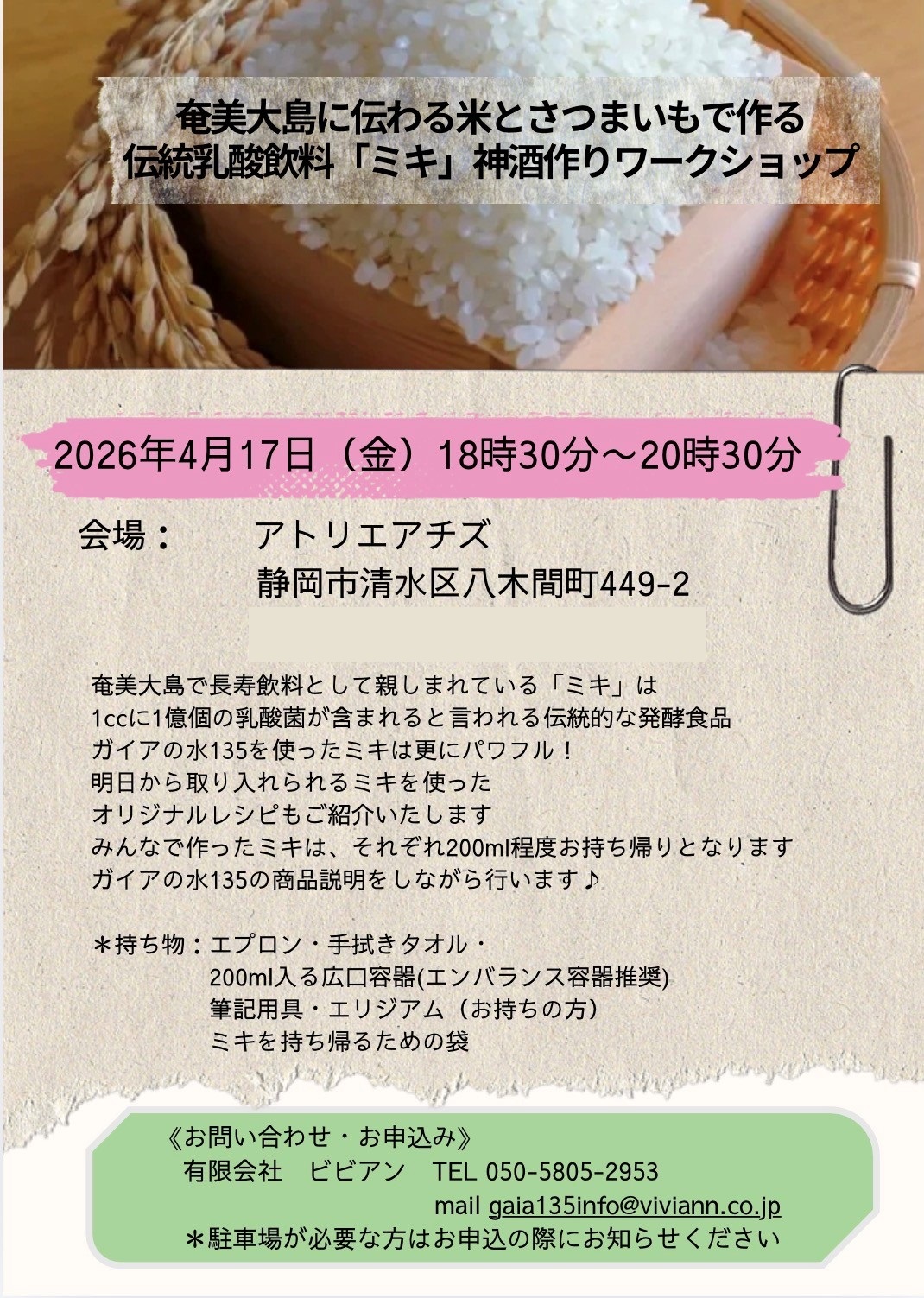 ご予約申込・お問い合わせはビビアンまでご連絡をお願い致します。