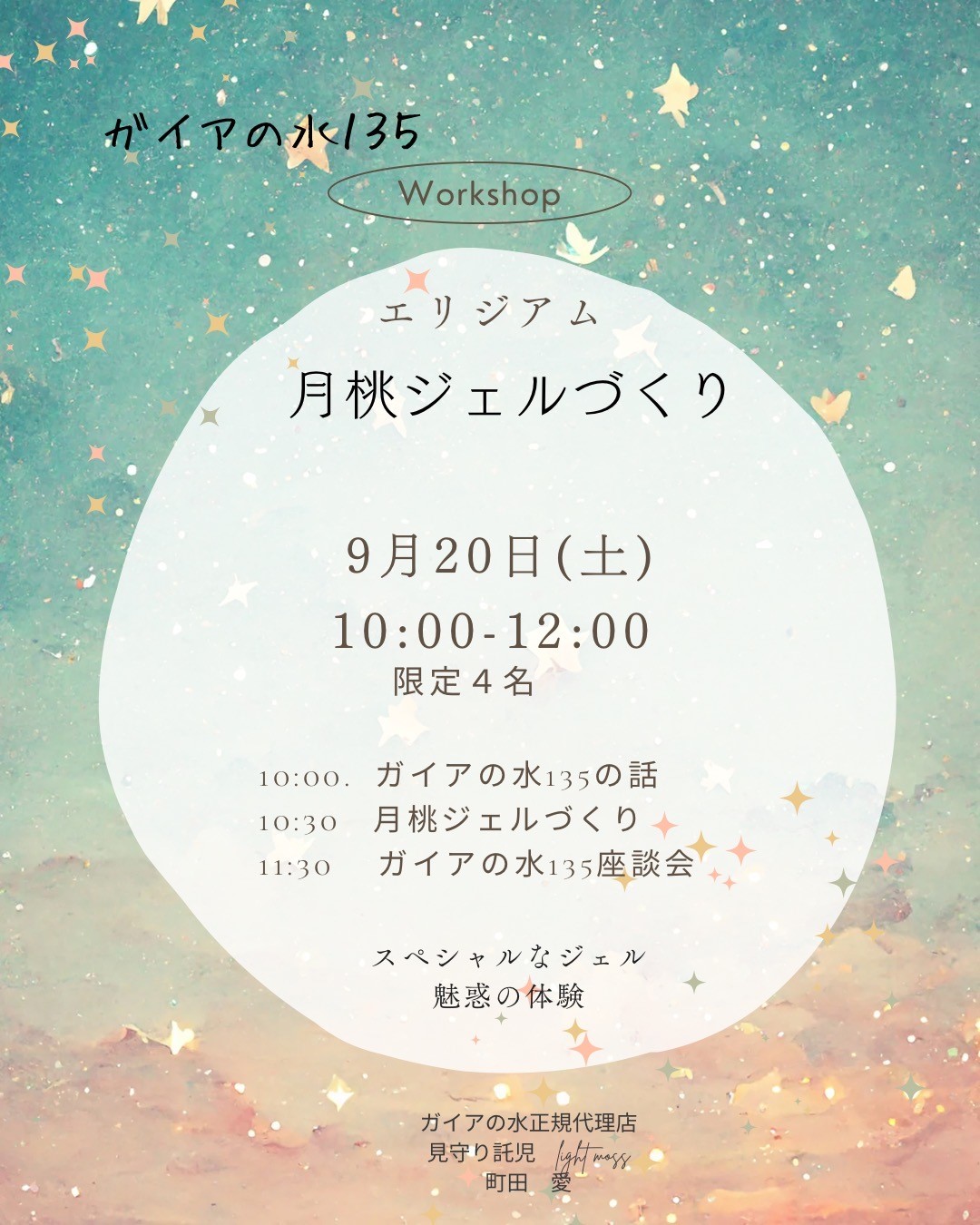 【北海道・札幌】「エリジアム入り月桃蒸留水ジェル作りワークショップ&ガイアの水135座談会」